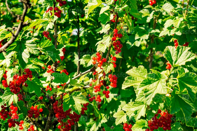 Ягоды красной смородины на кусте в солнечный день