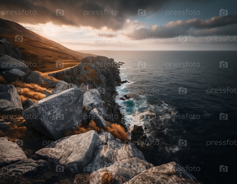 Красивый кинематографический горный пейзаж с черным мрамором и гранитом