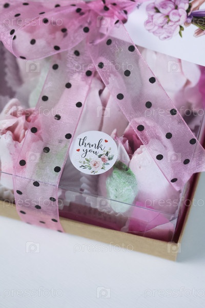 Подарочная коробка с розовыми тюльпанами. Домашний зефир. Зефирные цветы. Тюльпаны из зефира
