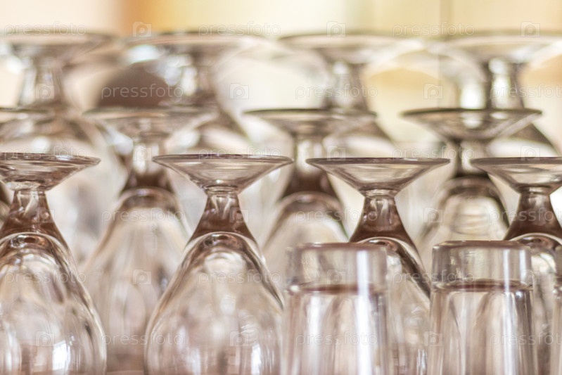 Снимок стаканов, сложенных на полке. Концепция
