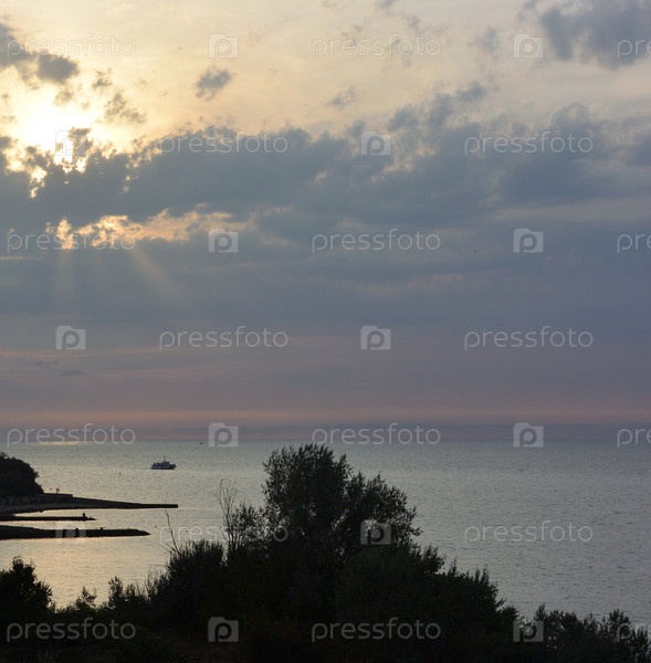 Закат над Черным морем в городе Севастополь в Крыму