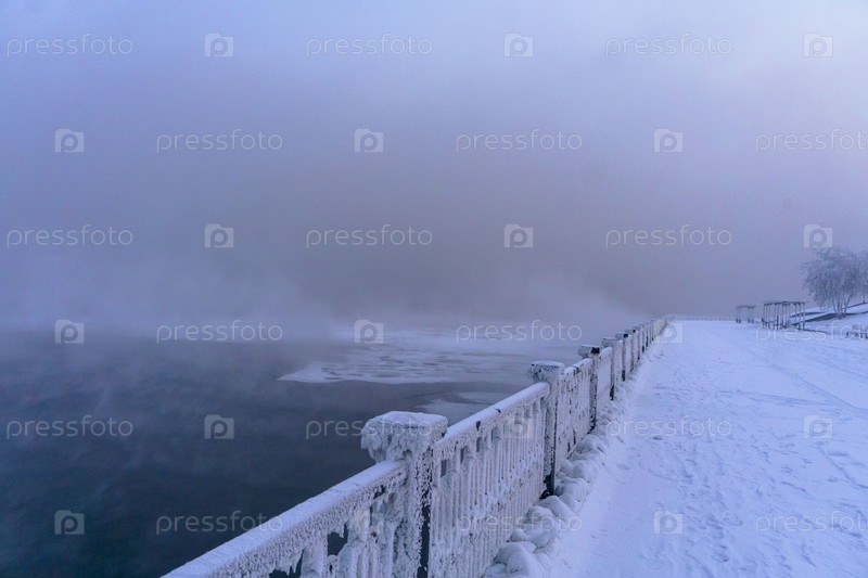 Прогулка по набережной Енисея в сильный мороз