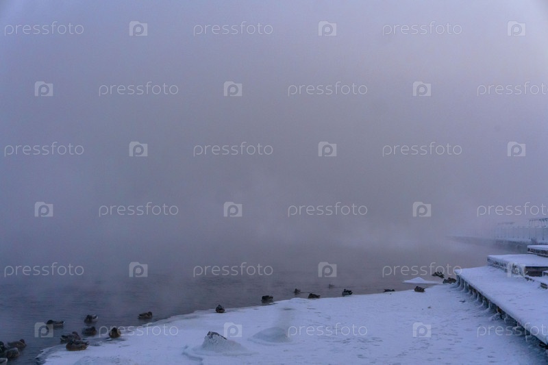 Прогулка по набережной Енисея в сильный мороз