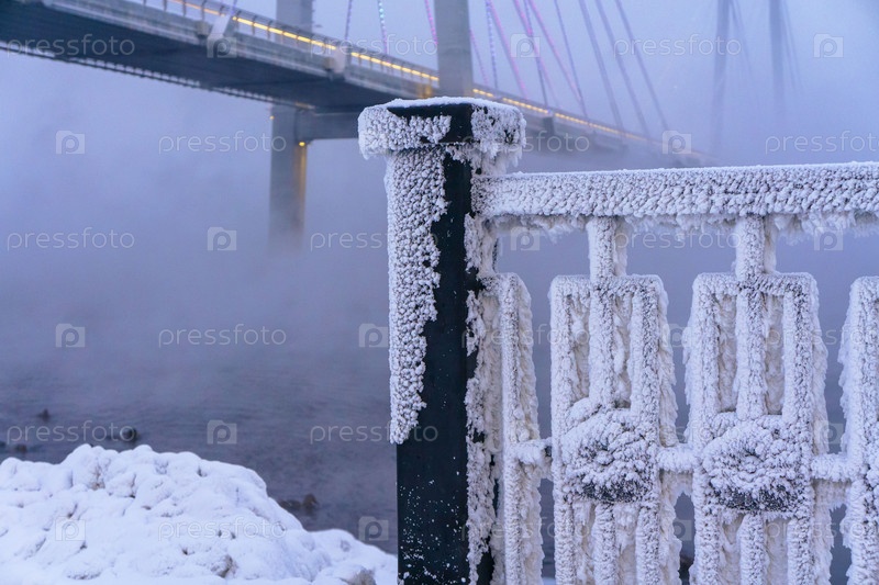 Прогулка по набережной Енисея в сильный мороз