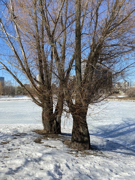 Зима в городском парке в сухой солнечный день