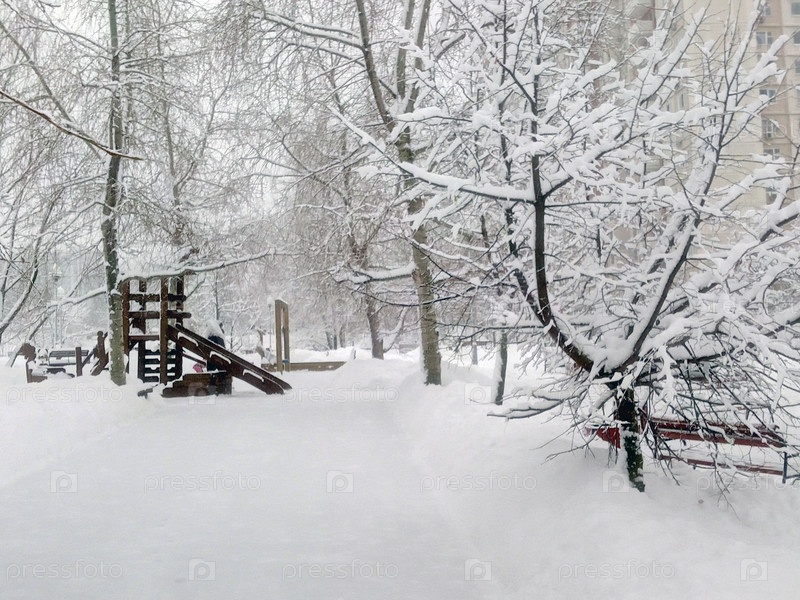 Городской парк после снегопада днем