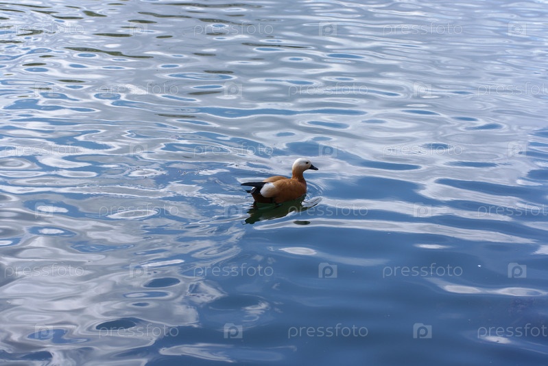 Утка на воде в пруду городского парка в сухой солнечный летний день
