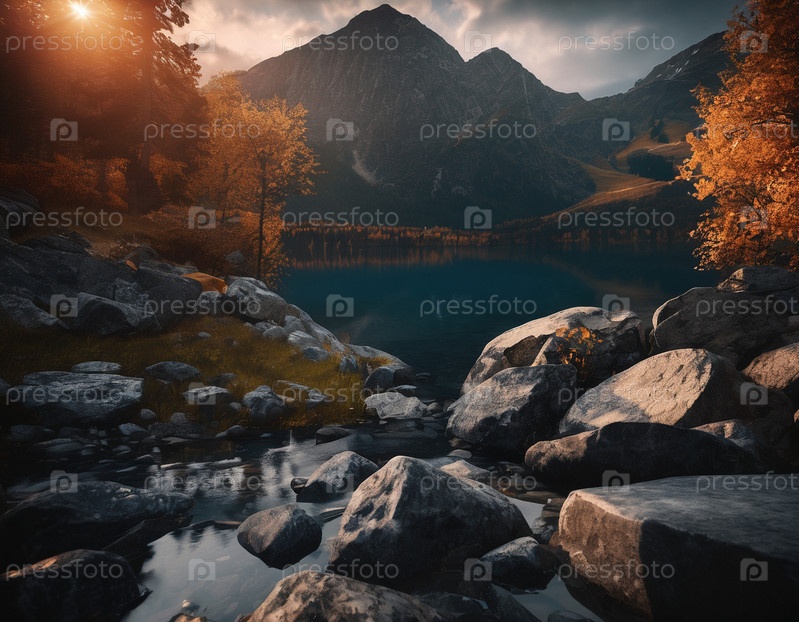Красивый кинематографический горный пейзаж с черным мрамором и гранитом