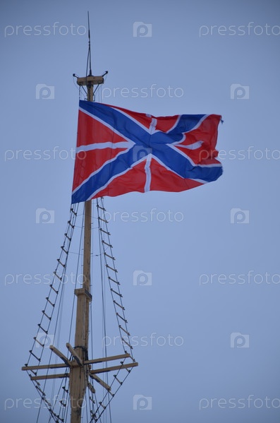 Крепостной флаг гюйс на флагштоке Флажной башни Нарышкина бастиона Петропавловской крепости в Санкт-Петербурге