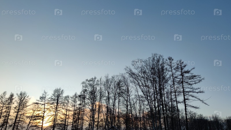 Зимний закат за деревьями