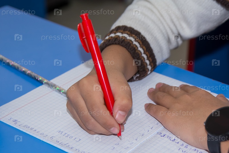 Блокнот, учебник и ручка лежат на столе ученика в школе