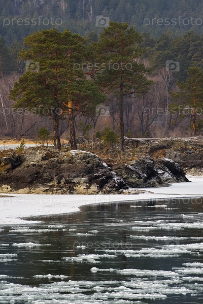 Россия. Юг Западной Сибири, Горный Алтай. Вид на незамерзшую реку Катунь близ поселка Усть-Сема
