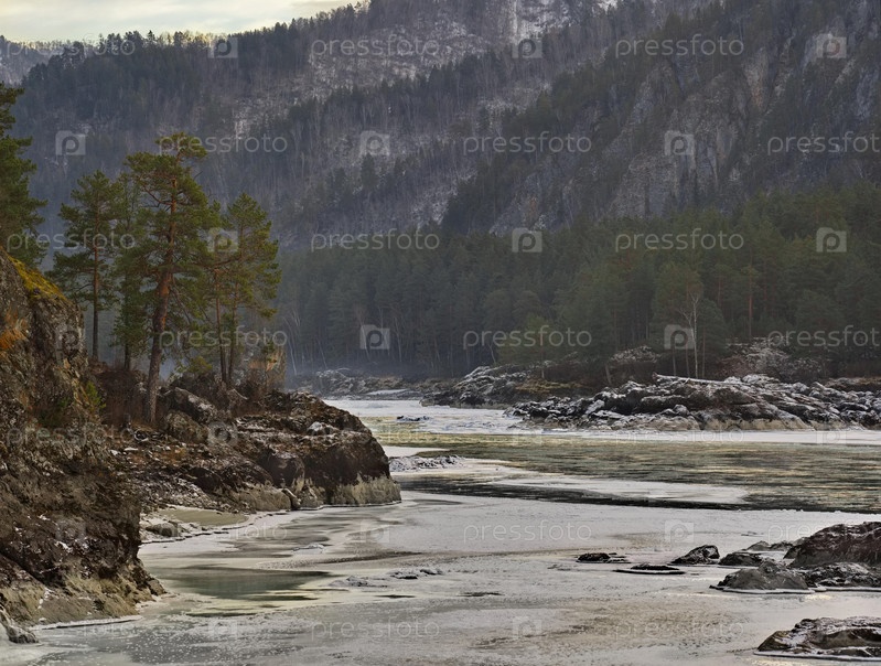 Россия. Юг Западной Сибири, Горный Алтай. Вид на незамерзшую реку Катунь близ поселка Усть-Сема