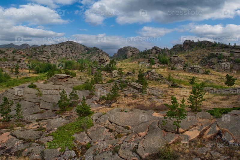 Восточный Казахстан. Удивительной красоты национальный парк древних гор Баянаул, расположенный посреди в бескрайней степи