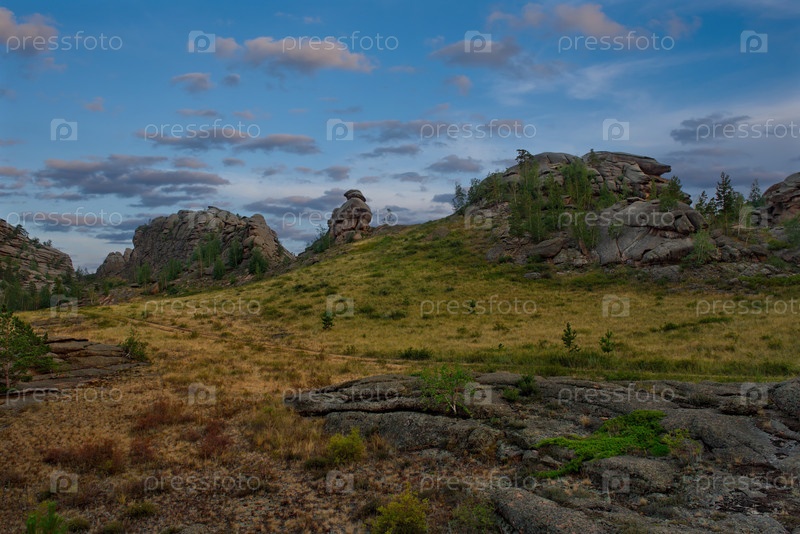 Восточный Казахстан. Удивительной красоты национальный парк древних гор Баянаул, расположенный посреди в бескрайней степи