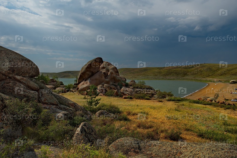 Восточный Казахстан. Удивительной красоты национальный парк древних гор Баянаул, расположенный посреди в бескрайней степи