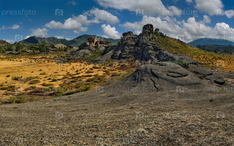 Восточный Казахстан. Удивительной красоты национальный парк древних гор Баянаул, расположенный посреди в бескрайней степи