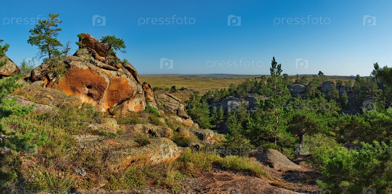 Восточный Казахстан. Удивительной красоты национальный парк древних гор Баянаул, расположенный посреди в бескрайней степи