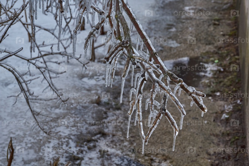 Растения после ледяного дождя. Ветви растений и побеги покрыты льдом. Ледяные ветки растений, последствия ледяного дождя
