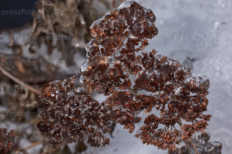 Растения после ледяного дождя. Ветви растений и побеги покрыты льдом. Ледяные ветки растений, последствия ледяного дождя
