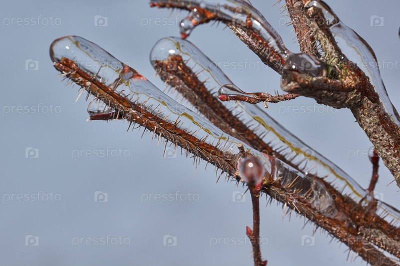 Растения после ледяного дождя. Ветви растений и побеги покрыты льдом. Ледяные ветки растений, последствия ледяного дождя