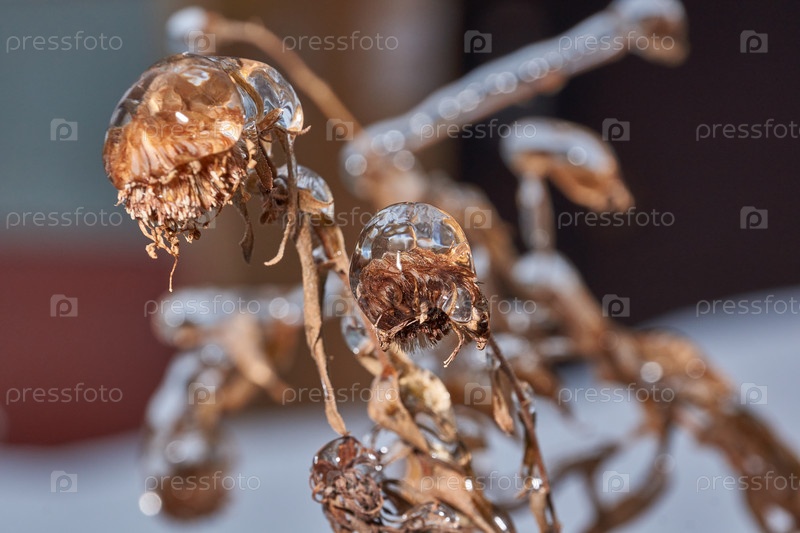Растения после ледяного дождя. Ветви растений и побеги покрыты льдом. Ледяные ветки растений, последствия ледяного дождя