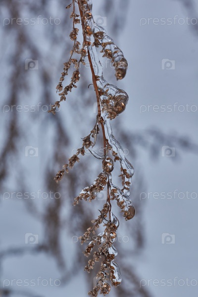 Растения после ледяного дождя. Ветви растений и побеги покрыты льдом. Ледяные ветки растений, последствия ледяного дождя