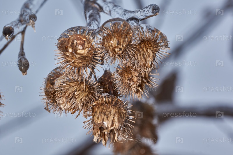 Растения после ледяного дождя. Ветви растений и побеги покрыты льдом. Ледяные ветки растений, последствия ледяного дождя