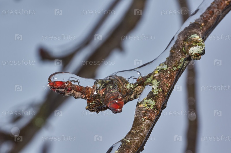 Растения после ледяного дождя. Ветви растений и побеги покрыты льдом. Ледяные ветки растений, последствия ледяного дождя