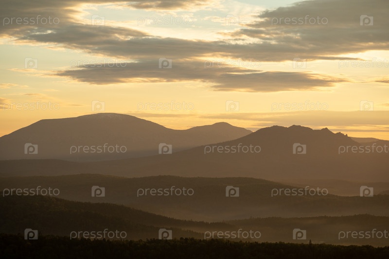 Уральские горы на рассвете в районе поселка Айгир