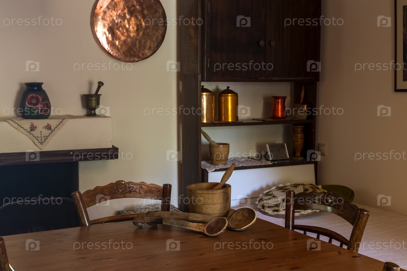 Интерьер сельского, старого дома крупным планом
