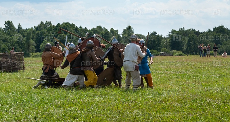 Сражение средневековых воинов. Первый в России Международный фестиваль Военно-исторической реконструкции "Душоновские Маневры 2021 г"