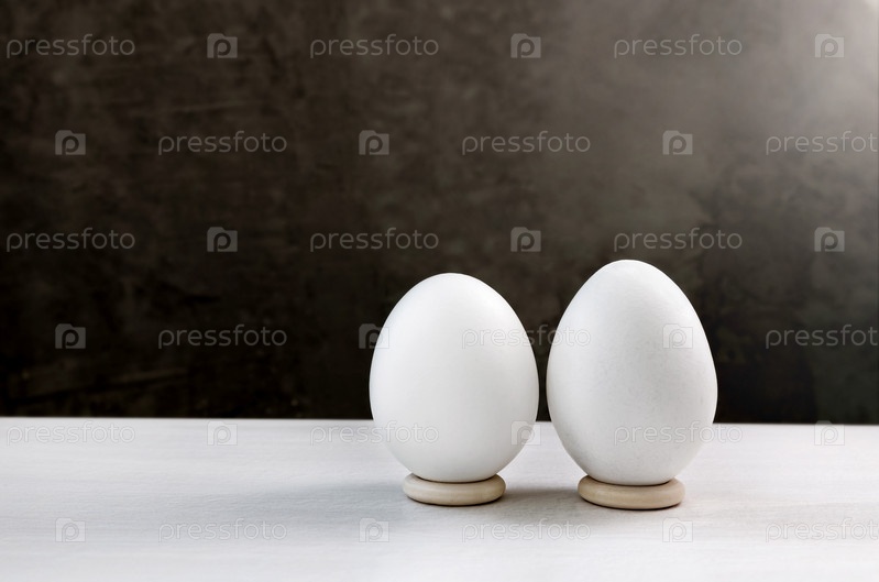 Белые куриные яйца на белом столе. На старом сером фоне
