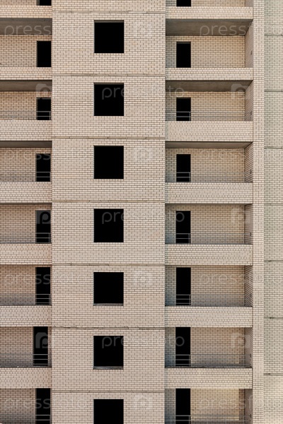 Построенный кирпичный дом с проемами для вставки окон