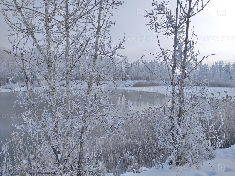 Зимний вид на озеро, образованное целебным источником на территории монастыря Ачаир