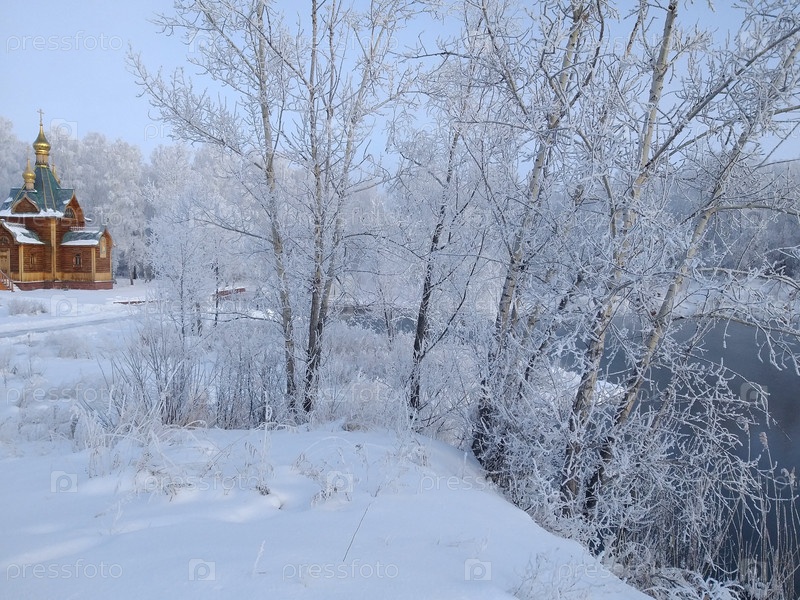 Зимний вид на церковь Иоанна Предтечи на территории Ачаирского монастыря