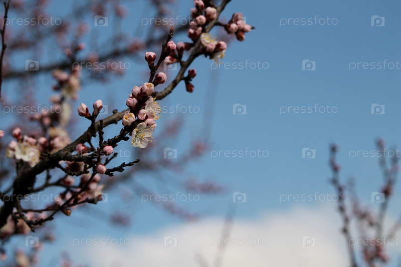 Цветы вишни на размытом фоне. Обои на стене. Нежный весенний фон
