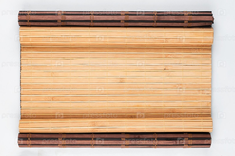Темно-светлый бамбуковый ковер с изогнутыми краями. Вид сверху. Место для текста. Тёмный и светлый бамбуковый ковер со закрученными краями. Вид сверху. Место для текста