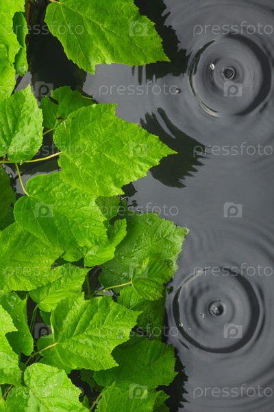 Зеленые листья в воде под дождем