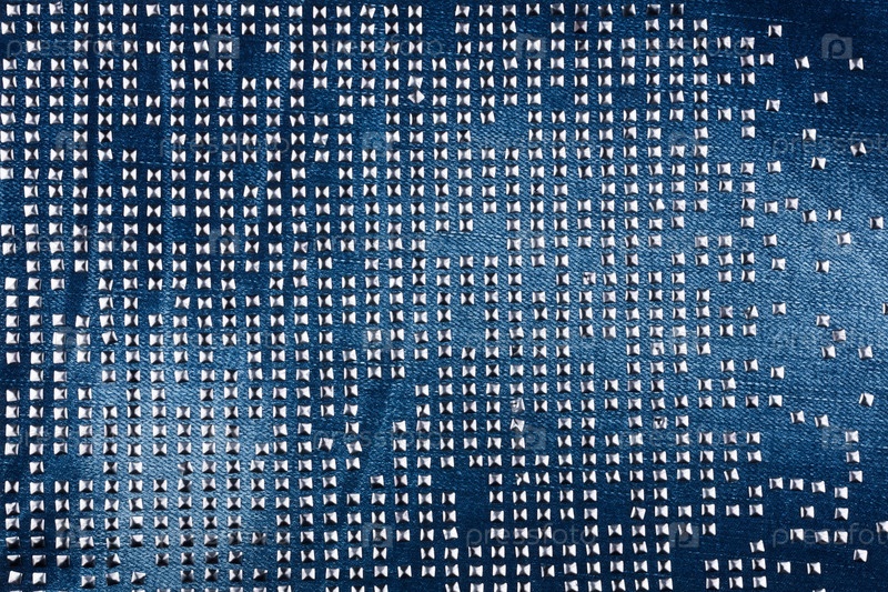 Джинсовая ткань с металлическими украшениями