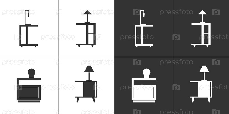 Тумбочки и настольные лампы. Черные и белые плоские иконки