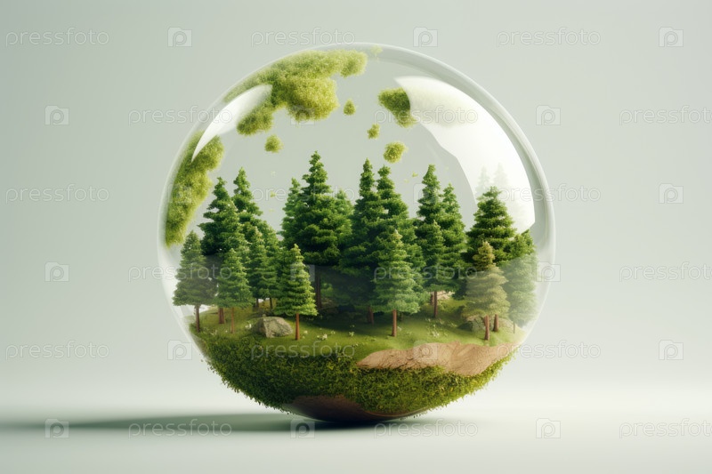 Хрустальный глобус, опирающийся на мох в лесу - концепция окружающей среды