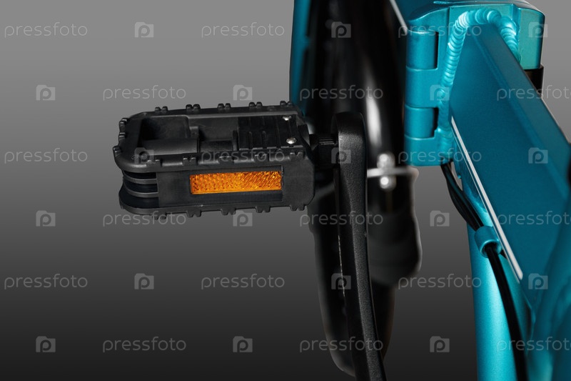 Пластиковая велосипедная педаль. Крупный план. Изолированные на сером фоне