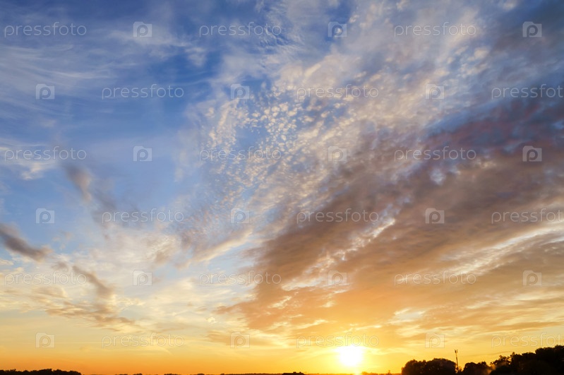 Это закатное небо. Красочное небо на закате. Разноцветный фон для дизайна