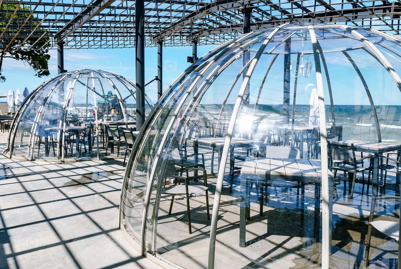 Кафе под стеклянным куполом. Набережная Балтийского моря. Ресторан на берегу моря