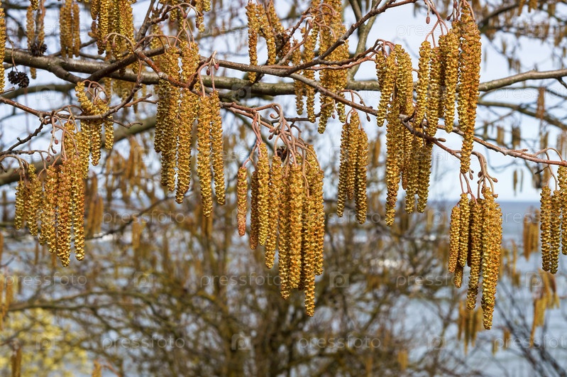 Деревья зацвели весной. Серьги на дереве Береза и Ольха