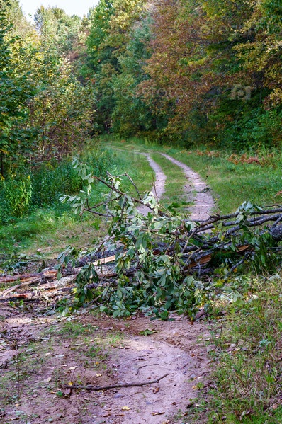 Осенний лес. Лес после грозы. Дерево упало на дорогу