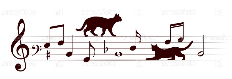 Музыкальные ноты с домашними кошками