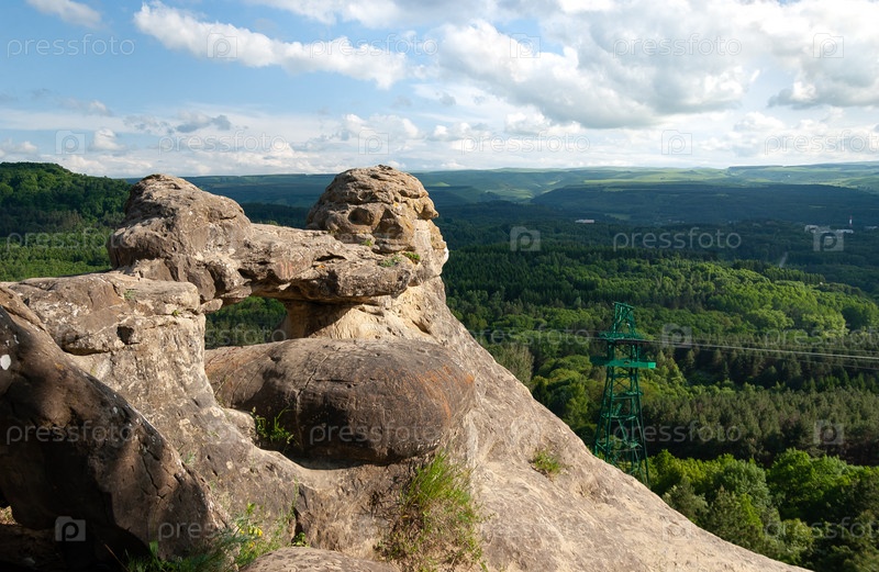 Кисловодский национальный парк, скалы на горе Красное Солнце, мачта канатного подъемника. Кисловодск, Россия