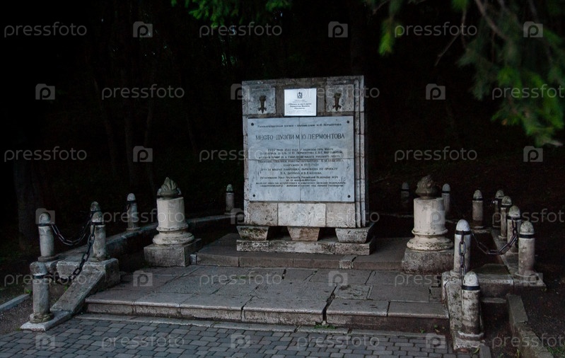 Город, Пятигорск, подножье горы Машук, памятник, памятный знак у места дуэли поэта и офицера М.Ю. Лермонтова 15/27 июля 1841 года. Место паломничества туристов. Ставрапольский край, Россия